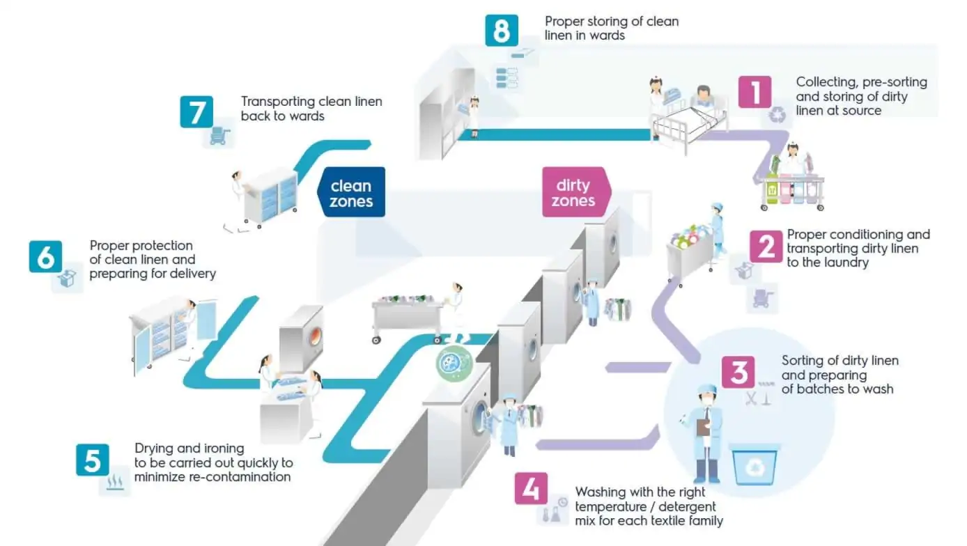 Meticulously designed to meet and exceed the stringent hygiene regulations essential for hospital settings. Committed to ensuring a sanitary environment, our solution provides an ironclad guarantee against cross-contamination and infections throughout the laundry process. This dedication to hygiene compliance not only enhances patient care but also addresses the critical need for infection control in healthcare facilities.